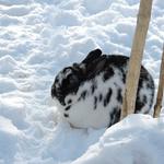 Pötyi ivartalanított bak, az első nálunk született nyúl (testvérével, Cserivel együtt). Amikor bekerült a nagy kifutóba, két napig csak a legtávolabbi sarokban ült, majd szépen felbátorodott. Amikor bekerült Jancsi, a nagyezüst bak is a képbe, akkor egy napig a nagyezüst leányzó csak loholt, Jancsi utána, Pötyi meg Jancsi után. Szerencsére nem torkollt verekedésbe a dolog, azóta jó megvannak. Jancsi majd január 20-a körül visszakerül a ketrecébe, három hét alatt remélhetőleg megfogan az anya. Utána ő is megy az addigra feltehetően elkészülő új ketrecbe.