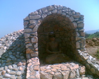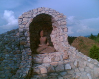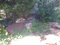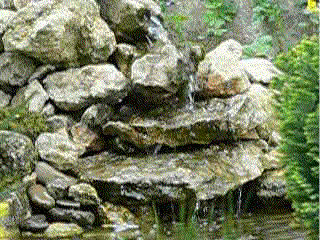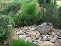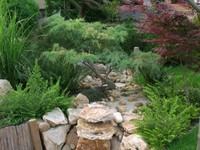 Ha már csobogó-vízesés, nézd, mit lőttem neked! :-) Valami ilyesmi esetleg? Umm, juteszembe, Buddha balja és a tó közé a domboldalra nagyon kívánkozna egy ernyős japán juhar, méghozzá valami masszívabb levélszerkezetű, és ha a közelébe még egy Albizia is kerülne valamikor, ami takarja a vörös palmatum-ot is, akkor egészen jól összeállna a kép...