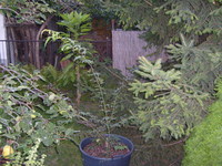 Egyébként arra az egy emelettel lejjebb levő placcra volna egy ötletem, egy tűlevelű gyűjtemény, az első darabjai már úgyis megvannak, jó néhány nagyon szép példánnyal még lehetne gyarapítani, ha van kedved kuglizni, ilyenekkel: Sciadopytis verticillata, Picea breweriana, Pinus patula, Pinus palustris, Pinus coulteri, Pinus densiflora 'Oculus Draconis', Pinus wallichiana 'Frosty', Pinus parviflora 'Tempelhof', Pinus strobus 'Pendula', Picea abies 'Pendula' és 'Inversa', Cedrus deodara 'Gold Mound', Chamaecyparis nootkatensis, Cupressus cashmeriana, etc... És nálad még helyük is lenne.