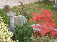 Na, ezen majd havas téli estéken elgondolkodom, most inkább ültettem pár juhart... Tényleg, van egy Acer saccharinum 'Born's Gracious', simán kenterbe veri bármelyik extra szeldelt levelűt, csak alakítani kell majd... Bergeniákat ültettem, tölteléknek az árnyékba és Nandina helyett próbát teszek egy Leucothoe-val, eddig még nem kiabálnak ki az összképből. Fűfélék nagyon kellettek, egy-egy csomó ide-oda, abszolút képbe illenek, bármilyen fajról is van szó - bár a Carex és a Miscanthus-ból szinte mindenféle méretű és színű van már itthon, amivel leeht számolni - akár törpebambusz helyett is, mert az elég nyűgösen fejlődik.