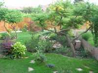 A kerítés mögötti terület a szép fűvel sajnos a szomszédé. A mostani helyem ahol a japánkertet terveztem elég kicsi -igazából élőben lenne jó megnézni- és talán létszik, de belelóg a képbe egy abies concolor is, ami ha megnő el fog érni a juharig... Ötleteidet várom :))