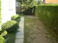 Mire gondolsz? Sövénynek nincs hely, max. valamivel be tudnám futtatni a kerítést, talán borostyánnal, de az leárnyékolna mindent, mert a nap arról az oldalról süt délelőtt. Ha a növények megnőnek, gondolok itt a fákra, fenyőre, és a kerítés előtt lévő bokrokra megoldódik ez magától, de ha a borostyán lenne a megoldás, mert ha ez kell az összképhez? :))