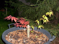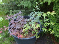 Az enyém meg az Acer palmatum 'Atropurpureum', de az előzőre csak a levelek formájában hasonlít, színben nem.