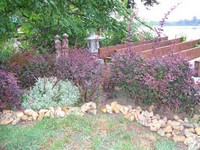 És ha idővel eltűnik a kerítés, akkor máris jobban fog mutatni ez a kis japánkerti rész? Most a kerítés előtt egy szilvarózsa van, ami a virágaival a japán cseresznyére hasonlít és azt helyettesíti, előtte egy pinus mugo, majd a juhar, attól balra madárbirs, jobbra szugifenyő (elegans viridis) és magnólia (stellata), illetve terülő boróka és tiszafa is van a közelben. Egyenlőre ennyi növény fért el, ha nem akarom olyan szinten túlzsúfolni (szerintem már így is olyan), hogy később ne férjenek el rendesen. Mit lehetne még tenni a hangulat érdekében? Van még 13 db nagyobb, olyan 20-30 kg-os fehér sziklakövem. azokat betegyen ide, ha igen, hová, milyen elrendezésben? (a feleségem máris szólt, hogy sajnálja a füvet itt)