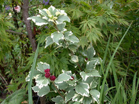 A többiek viszont, az úgymond kényeskék remekül átvészelték a telet 0-10 cm ágveszteséggel, úgyhogy mind hajt, az 'Osakazuki' viszont - ami valszleg ugyanúgy import áru volt a legelső, már kidöglött 'Atropurpureum'-mal együtt - elveszített egy nagyobb ágat, a háromból kettő maradt, de azok teljes hosszukban hajtanak. Szóval nagyon úgy tűnik, a japán juharos móka nagyon kétélű dolog, kétszer nézze meg az ember, mit - és honnan - vesz...
