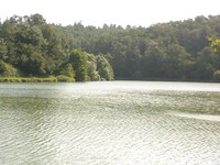 Lentre, a nagy tó mögötti rézzűs részre, a kis, fehér szomszéd házat takarandó: az nem fogja meg a kilátást, és legjobb emlékeim szerint a fenyők még nem ott kezdődnek... Egy laza, ligetes kiültetésre gondoltam, ha lehet, szerezz be még nagy levelű fajokat és nagyra növőket is, hogy elég változatos legyen a kép. Ott meg nem baj, ha túlnőnek a méretein, egymást majd leszabályozzák. :-)