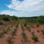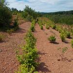 Ez itt egy kísérleti jellegű parcella a bányában. A felső képeken Cornus sanguinea, veresgyűrű som, az alsó két képen Viburnum lantana, ostorménfa, piros bogyókkal, az utolsó kettőn Corylus colurna, törökmogyoró. Elég jól bírja mindegyik a sivár körülményeket, és nem is drága. Egyszer talán felnőnek. Nem mind, az már most látszik, de még pótolhatják...