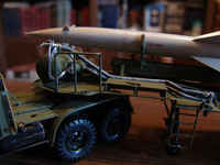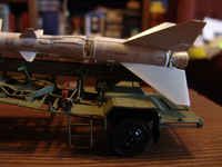 Hát azért még van mit vacakolni rajta. És ahhoz képest, hogy kínai gyártmányú a makett, félelmetesen precíz. Bár nem sokat foglalkoztam rakétákkal, de azért nagyon sok fontos elemet felfedeztem a rakétán is, meg a TZM-en is. Még azok a táblázatok is megvannak a rakéta testén, amiket annak idején zsírkrétával folyamatosan vezetni kellett. A legnagyobb bánatom, hogy magyar egyenruhás figurákat nem tudok hozzá szerezni, mert akkor meg tudnám csinálni a rátöltést diorámán. Ugyanettől a gyártól már megvan az indító állványom is.