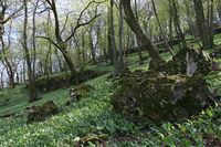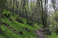 Turistát nemigen láttunk, ellenberger volt aki két tömött szatyorral hozta lefelé a medvehagymát. A nagy szél ellenére mi azért néhol meg megállva, hol balra a sziklákban hol jobbra a Pisznicében gyönyörködve haladtunk tovább. A Serédi-kastély sarkánál, a pecsételő szelence mögött egy szélcsendes helyen fekvő szép nagy kidőlt fára letelepedtünk és megettük a szendvicseink javát, kacsazsíros zsömle frissen tépett medvehagymával. Nem is kell ennél jobb!