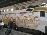 Az ARANYCSAPAT volt felfestve a mozdonyra...