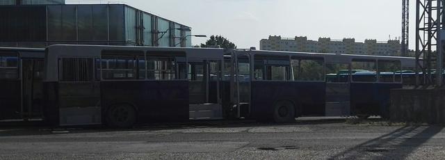 Látható hírek Kf-ről: Az NGC-024-en folyamatosan dolgozhatnak, most épp emelőn van a gép. Az ex. étkező vázmunka kész, ki van hajítva az udvarra, a két fél csuklós PKD mellé. Nyolc-kilenc CNG Volvo lehet már egymás mellett, igaz, legalább a harmaduk tartály nélkül - ez már nem feltétlen tűnik alkatrésznek beszerzésnek.