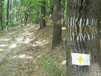 Kérlek szépen, igen a sárga jelzésen, amely fehér alapon 10x12-es tégla formában leledzik a fákon és egyéb tereptárgyakon, a fehér alapot vízsszintesen a felénél metszi kb 3 centi szélességben citromsárga színben!:-)))