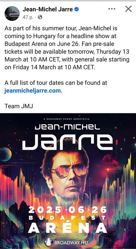 Jarre-nak tényleg nagy rajongótábora van nálunk, a lengyeleknél pedig még nagyobb, szóval biztos vagyok benne, hogy sikeres lesz a koncert. Azt mondjuk hozzáteszem, hogy már 2016-ban több beszámoló szerint az volt, hogy elmentek a nyuggerek a 70-es évekbeli nosztalgiázásért, aztán arcba csapta őket a basszus és besértődve indultak haza, hogy "brühühü, hol a régi hangzás", mivel nem néztek utána, hogy mi történt az utóbbi 50 évben, csak a név miatt vették a jegyet. Ilyesmi most is előfordulhat, bár szerintem az utóbbi 10 évben már jobban belekerült a köztudatba, hogy mire is kell számítani. Akinek a pozsonyi koncert tetszett, az menjen, akinek nem, az ne menjen.