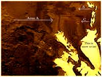 Más. Megnyitottam a csapot, és a Titánraszállási akció folyt belőle. Ismét bóvli fényképet közöltek le róla. Commodore minőségű grafikát mutattak kép helyett a Titánról. Hmmm, miért? És persze szigorúan a talajt, pedig érdekes lenne (ha áttetsző a légkör) amint az óriási anyabolygó beragyogja az eget. Állításuk szerint folyékony szénhidrogén folyók folydogálnak szintén ilyen tengerekbe.