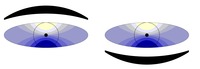 Ha tehát nem pislogunk eleget, akkor a felső régió sokkal hamarébbb szárad. A monitor mögött meg hatványozottan szárad. Mert ugyebár a monitor világít és fénnyel bombázza szemünket. A monitor mögött mindenki elfelejt rendesen pislogni. De, ha még rendesen is pislog nagyon nagy ott a könnyigégy és egy idő után berozsdásodik a dolog. Könny van elég a tasakban, csak valahogy mintha nem tudna kijönni. A felső régió világosabb (kevesebb könny) az alsó meg sötétebb (több könny van ott). Ilyen térképet lehet hiába kerestek, csak úgy tapasztalataim alapján állítottam össze. A bal oldali ábra a normális allás a jobboldali meg azt mutatja, mikor lefelé van a fej (tehát a szemöldök lejjeb lesz mint a szem). Tehát szépen látható, hogy fordult a kocka, mégpedig pontosan szimmetrikusan. Ha ez a térkép nem is pontos, nem olyan lényeges. Bármilyen hasonló is, ha megfordítjuk, akkor szimmetrikusan az is fordított lesz.