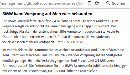 Szoval ez az infostart-pofozkodas :-) valoban erdekes, hiszen a nemet autogyartokat pofozta :-), de! ha megnezi az ember hogy vilagszerte melyik nagy (szemely) auto gyarto mennyit adott el mondjuk 2021-ben es 2022-ben, akkor a nemet VW vezetö helyen (2. a rangsorban ugye) van a mindket evben több mint 8 millio eladott autoval (1. monitorkep es az utolso monitorkepen a 10. rangsorbol a 2.-on mindkettön, a kinai legnagyobb autogyarto > SAIC 2021.-ben nincs is a 10.-es listan, 2022-ben a 10. helyen van a kb 2,8 millio eladott darabbal, ebböl mar akkor kb 1 millio exportra ment, gyartott pl 2021-ben Kinaban a VW-nak pl 1,32 egyseget, vagy a GM/General Motors-nak 1,17 millio egyseget a kooperacio kereteben, ha mint össz gyartast vennenk, meg akkor is ez csak kb 5,3 millio lenne), par masik nemet autogyartot is neztem (monitorkepek lennt, de a linkben is lehet nezni), kb a nemet autogyartok több mint evi 20 millio autot adnak el, igy talan azt is kellene nezni az exportnal, hogy akarhol is gyartva nemet autogyartoktol mennyi ment exportra vilagszerte.