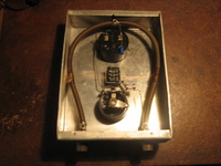 A beszúrt képek nagyon "hajaznak" egy "Dummy"-ra. Méghozzá egy olajban fürdő változatra. (A konzervdobozból itélve.) És a "kütyü" egy "home made", azaz amatőr készítmény lehet. Még valami? Ja! az a két bütyök ami a nyák-fedálből kiáll, lehet az műterhelésre menő bemenet, a másik lehet esetleg egy mérés csatija.