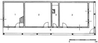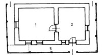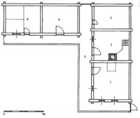 1. szoba; 2. konyha; 3. kamra; 4. istálló; 5. tornác