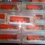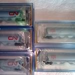 Megvételre kínálok egy kanadai (CN-CP) gabonaszállító szerelvényt. A modellek N-es méretarányúak, 14 db Bachmann cylindrical grain hopper a hozzáillő mőzdonnyal. 9 db narancs színű CPWX sorozatú és 5 db szürke CN-es gabonaszállító.
