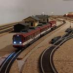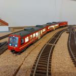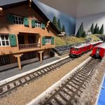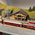 Eladó egy N-es méretű svájci témájú asztal kizárólag egyben két RhB-s (világítással ellátott) szerelvénnyel együtt (Kato 10-1414, 3102, 3102-3).