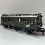 Tillig 74764 cikkszámú Byd halberstadti személykocsit, aminek van kerékpáros szakasz jelöléssel.