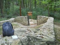 Röviden elgondolkodtam, először pecsételjek-e, vagy felmenjek az emlékműhöz, aztán elindultam lefelé a porcelángyár felé. Beütöttem az utolsó hiányzó pecsétet az igazoló füzetembe a gyár portáján, aztán betértem a közelben lévő Balkon büfébe egy ebédre. Egészen jutányos árért kaptam rántott csirkemellfilét rósejbnivel, ezt leöblítettem egy Borsodival, aztán a hátamra kaptam a betyárbútort és felsétáltam a kéktúra emlékműhöz és a kilométerkőhöz. Befejeztem a második OKT bejárásomat!