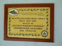 Az Erdei Iskola után is folytatódik a jól járható murvás út,majd erdei ösvényre fordul a kék,fél órás gyaloglás után megpillantottuk a Balaton víztükrét is egy kisebb fennsíkról,fényképezni nehéz volt,százágra sütött a nap...éppen velünk szemben.Nemsokára leértünk Balatonhenyére ahol megszereztük a második pecsétünket is a kocsma hátsó részén az ablakba volt kitéve párnával együtt.