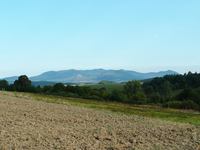 Erről az alacsony dombhátról lehet meglátni először teljes szépségében a Milic-csoport hegyeit, előterükben a füzéri várheggyel. Meg is álltam néhány percre itt, ledobtam a hátimotyót és igyekeztem kivárni a legjobb időpontot a fénykpezésre, mivel a változóan felhős égbolt alatt hol rásütött a Nap Füzér várára, hol pedig árnyékban volt. Idősebb úr jött fel kerékpárral Kisbózsva felől, megállt mellettem és büszkén mondta: Ugye, hogy ez a világ legszebb panorámája! Erre nem is kellett válaszolnom, mert szerintem is tényleg az!