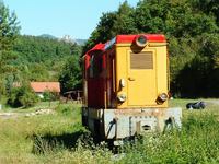 Innen már egy rövidebb menettel, egyre tisztuló úton elértem Füzérkomlóst. Egy szakaszon 300-400 lépés hosszúságban a telek tulajdonosa teljesen ki is írtotta a pályatest bozótját, ez nagyon dícséretes szándék! Kicsit körülnéztem a hajdani vasútállomáson: a régi, még a Rockenbauer-féle filmben is említett kőfejtőben puccos vadászház épült, a kisvasút mementóként meghagyott mozdonyát viszont már körbenőtte a gaz...