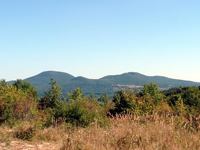 Kilátás a dombtetőről a Sátor-hegyekre