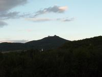 Átbaktattam az aszfaltúton Arkára, onnan pedig már földúton, ösvényeken mentem tovább. Leereszkedtem az Arka-patak völgyébe, és bár a patak teljesen ki volt száradva, de így sem volt könnyű haladni a benőtt ösvényeken! Mivel nem értek utol a kerékpárosok, gondoltam, csak kerülővel indultak vissza Mogyoróskára! Az alkonyattal együtt érkeztem a Mogyoróska melletti mezőkre, innen szép volt a kilátás a Regéc várára. Itt értek utol a kerékpárosok, ahogy elmondták, szinte az egész úton tolták a bicajokat. Még én is továbbindultam, de csak a falu alatti szép füves rétig, ennek a szélén vertem fel aznap a sátramat. A GPS szerint 28 km-t mentem aznap. Ez volt egyébként a leghosszabb menet ezen a túrán, szerencsére szinte emelkedő nélkül.
