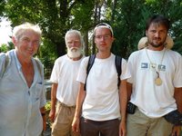 Szucsatival suhantunk a Balaton felé, s még éppen időben érkeztünk a tapolcai állomás melletti büfé elé – mellette egy bezárt zászlóbolt(?) - ahol vonatindulásig egy jól megérdemelt ágyas barackot fogyasztottunk reggel 8.35-kor, majd a teraszon fröccs mellett üldögélő, *likket olvasó helyi törzsvendéget interjúvoltam meg arról, hogy mi a szubjektív és baráti véleménye a több táblán is jelzett pacalról, illetve babgulyásról 650-ért, mire – egy sanda pillantással a pult felé - suttogva közölte, hogy: „konzerv”. Eme – immár – klasszikussá avanzsált válasz után a hirtelen beálló csönd és a mindjárt kitörő röhögés között ellensúlyozva próbáltunk komoly képet vágni e megdöbbentő felfedezéshez, illetve további gasztoenteriőr útmutatást kaptunk az állomási büfében lévő „süteményes” kitűnő szolgáltatásairól, ami lefordítva magyarra egy *ornettis pékséget jelentett. Mivel kíváncsiságom nem hagyott nyugodni, így vettem is ott pár darab sütit, természetesen semmi extra eredményre nem kell gondolni. 10 perc vonatozás után ugrottunk le Badacsonytördemic-Szigliget állomáson, Szucsati pecsételt, majd nekiindultunk a kék jelzésen Szigligetnek. A Szigliget előtti pálinkafőzde sajnos zárva volt, az esterházy pince sajnos szintén – még majd kiszáradunk ugye - az avasi templomromot viszont megnéztük. Csőstől jön a baj, a vár alatti Szászi pince zárva – bár 10 órai nyitást jeleztek – így a várnál pecsét, majd felgyalogoltunk a legmagasabb bátyára. A panoráma leírhatatlan, nem lehet megunni, a büfében szigligeti üveges sör (?), de én maradtam a meggy szörpnél. Lefelé jövet szerencsére pince épp nyitott, kedves lány örül nekünk, - mi még hogy neki – bent én tesztelem a kéknyelűt és a rózsakövet. Fain. Búcsúzkodás, jó hírek, hogy a Szent Györgyön is nyitva vannak, indulunk tovább, előbb a kerékpár úton, majd ráfordulunk az aszfaltútra. Itt egységesített nemzetközi kézjelek váltása néhány „kedves” autóssal, majd letérve az útról nekiindulunk a hegynek. Szásziékhoz bemegyünk, mások is vannak, jönnek, itt is kóstoló, üvegpohár, ülünk a lugas alatt, nehezen - és fájdalmas szívvel – indulok tovább. Szucsati mondja, menjünk inkább a sárga jelzésen, ne a kéken – geoláda miatt – rendben, én már úgyis bejártam, a sárga eddig kimaradt. Brutál panoráma, szenzációs pincék, hétvégi házak – medence(!) az udvarban – majd érdekes templomrom bukkan ki balról a fák közül. Arra megyünk, a sűrűből balra vas kapu, kikerüljük, megyünk befelé, jobbra omladozó remetelak, balra romtemplom, minden szétverve, enyészet. Bemászunk az ablakon, bent lim-lomok, a falak még bírják, a tető már nem annyira, a kilátás gyönyörű, bent szétvert régi harmóniumok (Csak később Tapolcán tudjuk meg, hogy Ify-kápolna a neve, szomorú történet…) . Továbbhaladunk a sárgán, hirtelen balra előttünk egy sövénysor mögött tisztás, rajta szép fehér templom, mellette kőház a „Világ végén…” Mondom nézzük meg, sétálunk befelé, majd hirtelen ajtó nyílik, s egy fekete ruhás, szakállas pópa lép ki az ajtón. Hűha… de odamegyek, bemutatkozom, váltunk pár szót, megkérdezi, megnézzük-e a templomot? Persze, közben mobilon hívják, műszaki szemmel vizslatom a napelemet a tetőn és a vízgyűjtő rendszert a ház mellett. Beszélgetünk vele, a templom és a ház vadi új – pince volt eddig itt – ő építi, van már egy 30-40 fős nyáj – bár a templom max 15 fős lehet - ő itt él egymaga, vizet hoznak neki a faluból, egyébként csak esővíz, s ő ortodox. (Furcsa kételyek bennünk, vajon erre kik ortodoxok ennyien, aztán elbeszélgetünk a görög katolikusokról, akik majdnem azok, mint ő, de mégsem. Megkérdezi, mi honnan jöttünk, mivel foglalkozunk, hát, majdnem ugyanez a világtól elvonult elmélkedő történet… ). Szucsati tesz egy utolsó keresztkérdést, megtudjuk, van néhány paradicsom palánta is a ház mellett, de legyint lemondóan, nem ér rá velük foglalkozni… Elköszönünk, a kilátás a Balatonra innen varázslatos, haladunk tovább a Kaán Károly ház felé. Itt pecsét az Enciánba, - a ház egyébként még egyben, a tető elég jó állapotban – majd lefelé sétálunk a kéken. Teszteljük a szőlőtermést, majd eseménytelen – illetve nem, szőke huszonéves kerekezik felénk fehér topban és rózsaszín rövidnaciban – gyaloglással érünk vissza az állomásra. A pacalt/babgulyást közfelkiáltással kihagyjuk, bent a Malom tónál minden tele – itt sem eszünk – pecsét a tavasbarlangnál – itt olvasunk az Ify-kápolnáról – majd irány hazafelé, Balatonakali Fék étteremnél viszont megállás, javaslom a késői ebédet itt. A hely tele, vasárnap 30%-os kedvezmény az ételekre, tócsit eszünk és palacsintát, az ajtón felirat: „Nyalt ma már?” Hmm…. A fagyijuk is jól fogy, a konyha is remek. Hazafelé eseménytelen út, Martonvásáránál beáll az M7-es, órák a dugóban, majd le a pályáról, irány az M6, majd onnan M0, majd vagy 3 órás késéssel végre itthon. Összegezve, számomra ez a környék megfizethetetlen, - s ahogy a reklám is mondja – minden másra pedig ott, az ….