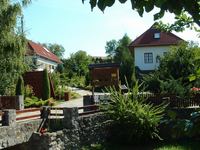 Ezen már csak két kilométernyit kellett baktatnom lejtnek, és már meg is érkeztem aznapi szállásomra. A Vöröskő vendégház pontosan ott áll, ahol a kéktúra letér az útról Vágáshuta felé, a pecsét dobozkája a ház kerítésére van szerelve. Én 1000 Ft-ért kaptam egy sátorhelyet a ház hatalmas, füves kertjében, mosdási lehetőséggel! A tulajjal csak telefonon beszéltem, azt mondta, nem tud kijönni délután a városból, de elárulta, hol találom a kulcsot, és közölte, hogy hagyjam a pénzt a házban a társalgó asztalán. Egyébként a házban takaros kis szobák vannak egy jól felszerelt konyhával, tehát ott is meg lehet szállni, a kertben pedig egy komplett sátortábor is elfér. Ha a szállás bárkit érdekelne: +36-30-532-5222. Lezuhanyoztam, átöltöztem, aztán még egy jó darabon elüldögéltem a ház napos teraszán. Csak hat óra után állítottam fel a sátrat a kis kerti tó mellett.