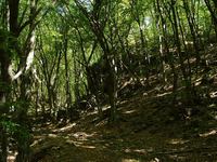 Pihenés után aztán nekiindultam a kaptatónak, de még a falu felső végén összefutottam három kéktúrázó férfiúval. Csak kis csomagokkal voltak, aznap kora reggel indultak Újhutáról, felkapaszkodtak az Eszkálához, onnan jöttek le Regécre. Azt mondták, ők megszervezik, hogy kocsival vigyék, hozzák őket a szakaszok kezdetére és végéről. Úgy emlékszem, ha lenyomják Boldogkőváraljáig, akkor meglesz nekik egyben Hollóházától Mátraverebélyig. Aztán ők lefelé indultak, én pedig felfelé. Húzós volt a kaptató, szerencsére szinte folyamatosan erdőben haladhattam, nem égetett a Nap!