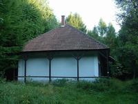 A Nagy-Péter-mennykőről leereszkedtem az István-kúti vadászházakhoz, pihentem és pecsételtem a kőháznál (ez a csúnyább), és feltöltöttem a kimerülőfélben lévő vízkészletemet az István-kút forrásából. Elég messze, vagy kétszáz lépésnyire van a forrás a háztól, érdekes, fehér tenyérlenyomat jelzéseket kellett addig követnem, ezeket úgy készíthették, hogy valaki körbefestett egy kivágott tenyérformát. Aztán átsétáltam a kicsit távolabb, egy nyírjesben álló gerendaházhoz, ez a szebbik!