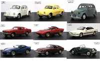 1:43 Del Prado (használt: állványon, de nincs dobozuk): - DODGE VIPER - BMW M1 - Renault Dauphine - FORD MUSTANG - LANCIA STRATOS - MORGAN 4 PLUS - DATSUN 240 Z - OPEL CALIBRA - etc