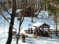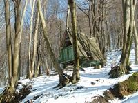 A K- jelzésre visszatérve újabb túracsapattal akadtam össze a Mátyás-kút melletti erdei pihenőben. Tényleg nagy volt tegnap a forgalom a Vértesben! Délre értem ide, ekkor már érezni lehetett, hogy kiengedett a fagy, kásás lett a hó, csurgott is a víz a fedett pihenő tetejéről! Pár percig beszélgettem a csoporttal, ők velem szemben járták végig a szakaszt, Szárligettől Gántig tervezték a túrát.