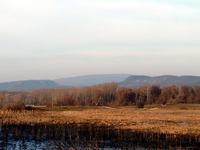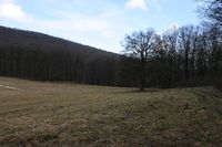 Kilátás a Szárliget előtti mezőről a Gerecse-hegyre és a Pes-kőre
