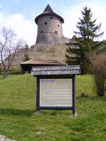 Mivel elég rövid a túraszakasz Várgeszes és Szárliget között (kiírás szerint csak 13,4 km), és már mehetnékem is volt, gondoltam felballagok a várba, hátha már nyitva lesz! Még keményen fagyott, amikor nekiindultam a kapaszkodónak, aztán húsz perc alatt elértem Gesztesvárat a K- és KL jelzéseken. Már nyitva volt a várkapu, ezért beültem egy seritalra a vendéglőbe, a gyorsítót hozzá a kislaposból szolgáltattam vodka formájában saját magamnak.
