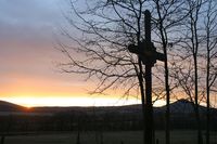 Érsek-tisztásig egy jelzetlen úton haladtam, a jellegfától nem messze indul kicsit jobbra pontosan dél felé, majd nyugatra tartva kerüli meg a Ló-hegyet. Az utóbbi részen voltak saras részek, de ez valójában kismiska volt az Érsek-tisztástól Kisirtásig vezető S jelzéshez képest! Az erdészet ismét kitett magáért, totálisan járhatatlanná tették ezt az utat, ami úgy sem bocsánatos ha kibiggyesztünk egy táblát, miszerint kedves erdőjárok, a tavaszi viharkárok eltakarításán dolgozunk, türelmet kérünk. Bevallom, az a nem kevés türelem amivel nekiindultam, párszáz méter után elfogyott :-( Kisirtáspusztán ismételten próbáltam valami igazolásfélét szerezni a Börzsöny Turistája lapomra, de ezúttal sem jártam sikerrel. Ezért hát megint dohogtam egy sort, adott egy túramozgalom, nagyrészt tök jó érintőpontokkal, de az igazolás szinte lehetetlen. Elhiszem hogy 30 éve nagy élet volt itt is, meg működött pl. Drégelyvár vm. de ma már ez nem így van! Nagy dolog lenne kijönni és felpingálni valahová három számot? Mert így a túraélményeket megöli a bosszúság, hogy már másodjára vagyok itt dolgom végezetlenül.. Azért ezen is hamar túllendültem, felmásztam a csuda-szállóig, eljátszottam a gondolattal hogy így ahogy vagyok sármalacként beállítok az étterembe :-) de végül nem tettem. Lehaladtam Márianosztráig, a rab-temetőnél kaptam búcsúzóul gyönyörű naplementét, aztán rövid kocsmázás után a 17:30-as busszal hazakeveredtem.