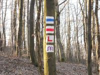 A forrás után meredeken kikapaszkodtunk a völgyből, itt sok helyen ösvény hiányában a kék jelzésekre voltunk utalva, sokszor fától fáig haladva követtük azokat! Egyébként az egész útra jellemző volt a jó jelzettség, ugyanis kitűnően látható volt a fákon a háromféle jelzés: a szürkével lefestett, de a festékréteg alatt még látható kék, a le nem festett kopott fajta, és a főképp a sziklákra festett, jellemzően teljesen újnak tűnő jelzések!