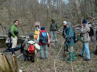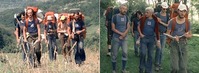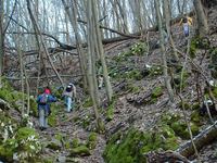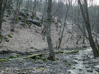 A forrás után meredeken kikapaszkodtunk a völgyből, itt sok helyen ösvény hiányában a kék jelzésekre voltunk utalva, sokszor fától fáig haladva követtük azokat! Egyébként az egész útra jellemző volt a jó jelzettség, ugyanis kitűnően látható volt a fákon a háromféle jelzés: a szürkével lefestett, de a festékréteg alatt még látható kék, a le nem festett kopott fajta, és a főképp a sziklákra festett, jellemzően teljesen újnak tűnő jelzések!