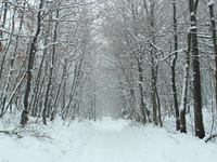 A szabadidővel nem álltam túl jól, de az előrejelzés azt mutatta, hogy ez a csütörtök lesz az év egyetlen havas és biztos napsütéses napja, így hát mentem és kész. Kivételesen a kényelmes, kilenc óra utáni érkezéssel kezdődött a program, a topicba való rész pedig az egyéb kitérők után fél tizenegykor. A nap tényleg végig sütött, de megvolt a hideg is, így viszonylag simán ment az emelkedő a szarvaskői szurdok tetejéig. A téli erdőben teljes csend, friss hóval borított fehér ágrengeteg, fölöttük hatalmas fenyegető hófelhők, de szerencsére a nap mindig megtalálta köztük az utat. Az úton egyetlen kéktúrázó lábnyoma haladt előttem végig.
