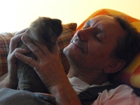 Nagyon jól érzi magát nálunk nem volt gond a beilleszkedéssel szerintem már tisztába van vele, hogy mi vagyunk az új gazdái egy picit sajnáljuk mert Aida elég domináns lány létére és ezt közli is Pom-pom -mal semmi komoly csak meg morogja és legfeljebb megcsípi egy picit.