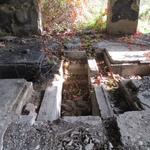 az egykori nagy fűtőház kapuoszlopai, aknái megtalálhatóak a fák között. egy kisebb épület még áll, ha el nem bontották. ez talán kocsijavító volt, vagy szintén fűtőház. a teteje kormos.