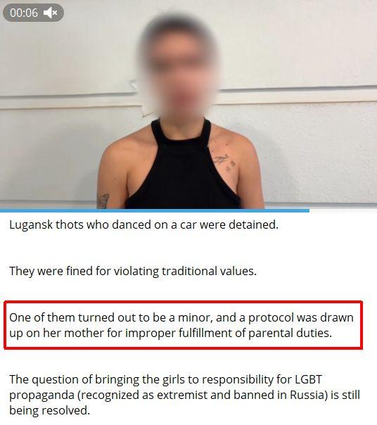A pörformansz részvevőit másnap reggel lecsukták, "hagyományos értékek megsértése" vádakkal (bár a ruszki jogrendben a buzipropaganda az egy valid tényállás, de nem ezért. Na és akkor a lényeg: az egyik kiskorúnak bizonyult, na ennek a szüleit (is) elővették.