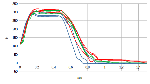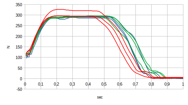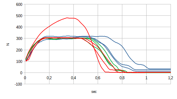 Egy ugyanolyan másik rúgó próbaüzemi körülmények között nagyjából 500 alkalommal erőhatárolt "lórúgást" kapott, és ennek következtében 3 mm-el csökkent a hossza. (Vagyis az enyhén előfeszített rúgó kiesett a befogóból.)