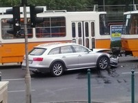 A villamoson nem láttam komolyabb sérülést, a forgalom viszonylag gyorsan megindult, de az autó még 4 óra után is ott dekkolt a kereszteződésben. A helyszínt látva vagy az autó akart szabálytalanul, tengelyben megfordulni (nincs időnk elmenni a BAH csomópontig), vagy a 61-es vezetője rántotta jobbra a villamos kormányát...