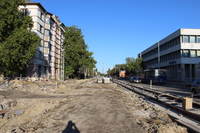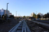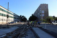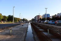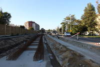 Acélvályús, Ph sínes rendszer épül, pont olyan, mint ami a Margit hídon van (csak ott a sínkoronáig fel van töltve), a sínszál egy rugalmas, elnyelő kiöntőanyagban úszik a vályúban. A MüPa miatt zajcsökkentett felépítményt kellett tervezni.
