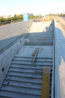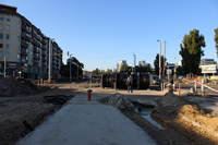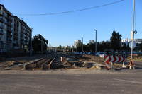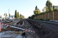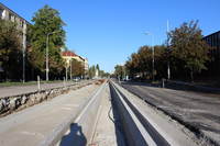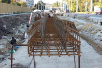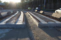 A betonaljakon látható lukakból arra következtetek, hogy három sínes lesz: a közúthoz közeli sínszál kap még egyet siklás esetére. Egyébként tényleg jó magas lesz, de szerintem így is tervezték.